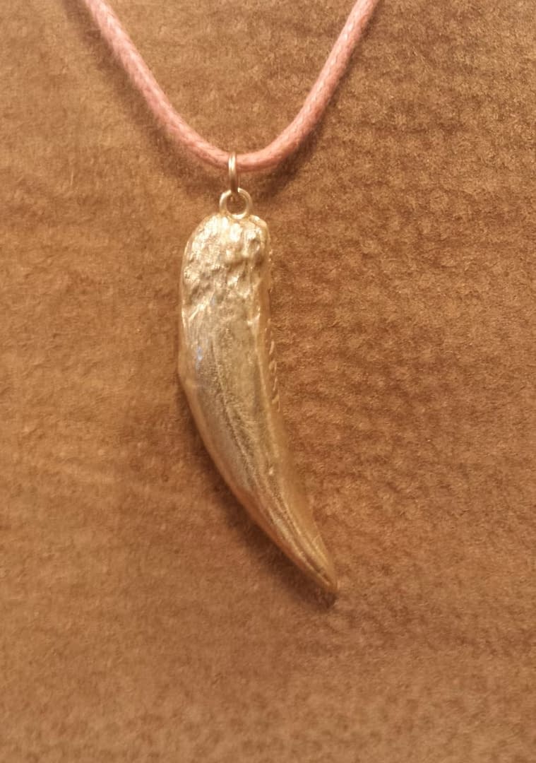 Craftsmanship and Meaning: Each pendant is a testament to mindful craftsmanship. We begin by creating a mold of an authentic Eurasian Lynx canine, the abscessed tooth was removed during a dental procedure under anesthesia. Bronze clay then brings the mold to life, crafting a stunning replica that pays homage to the wild.