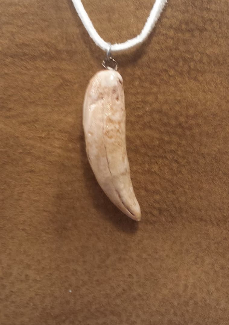 Realistic Polymer Eurasian Lynx Canine Replica Pendant: Honoring Taz